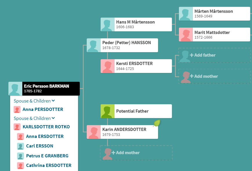- His mother's father Per Månsson and mother's mother Maria Persdotter