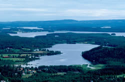 The lake Saxen where Styggviken lies behind the headland to the right and the family lived to the north on the other side of the sea